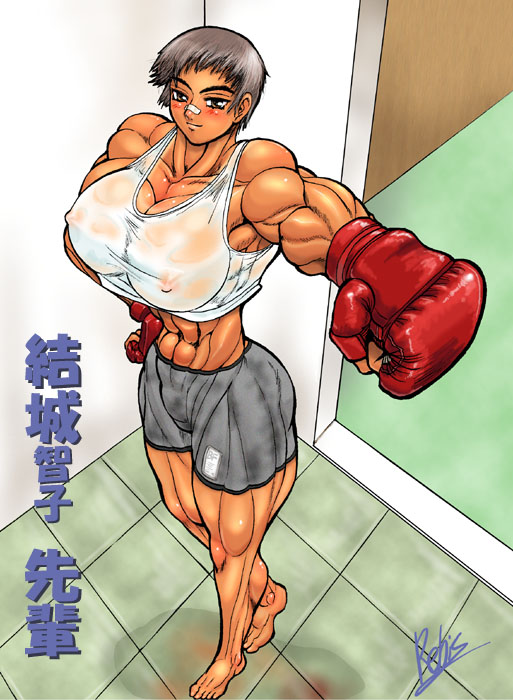 『ブロークン・フィスト』より、結城先輩小説『ブロークン・フィスト』(著/深見 真さん)から二人目のキャラを描いてみました。 筋肉一番! 空手最強! の結城智子先輩です。 本文中で「海外ボディビルダー並」と評される筋肉と巨乳! 発達した僧坊筋・三角筋! 大腿二頭筋から腓腹筋への流れるようなフォルム〜! ともうヨダレが出そうな筋肉描写の先輩なのです。 そのうえ結城先輩は誇り高きレズビアンで、 恋人のアイドル空手家・若菜さんとラブラブなのですね〜。 フタナリだと、レズというキャラ性が少し壊れてしまうのですが、 まあせっかくの迷宮CGなので(笑)、フタナリで描かせていただきました〜。 |