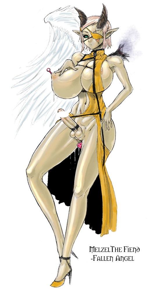 白い翼と光沢を帯びた肌は、かつて天使だった証―― しかし今やその目には邪悪な意思が宿り、均整の取れた体は アンバランスな淫魔の肉体と化しています。
