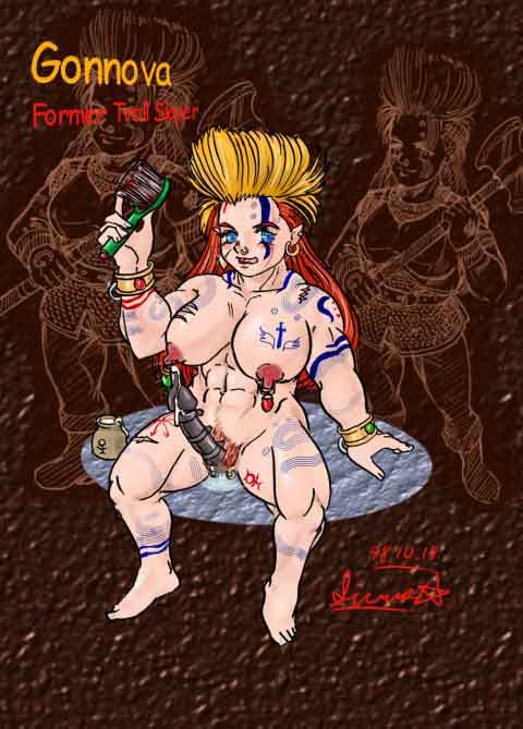 Gonova: Dwarven slave. She was once a berseker, but disciplined by Vialance completely.