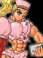 ネクロポリス三鬼衆の一人。異様に巨大な右腕を持った筋肉質の大女。着ているのは一応魔導看護婦の制服だが、ほとんど原形を留めていない。